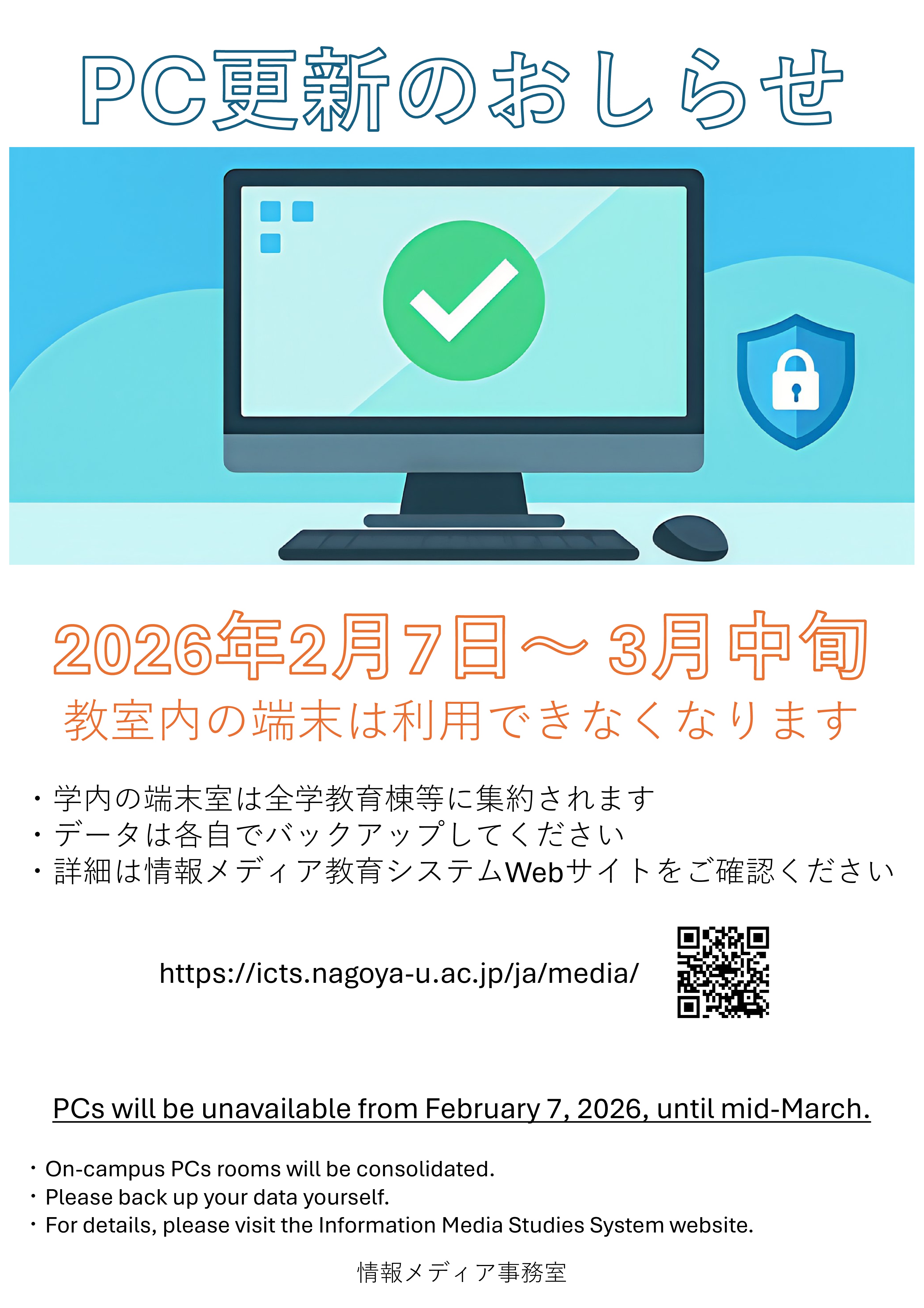 2026 Academic Year PC Lab Reservations ※Nagoya University internal access only