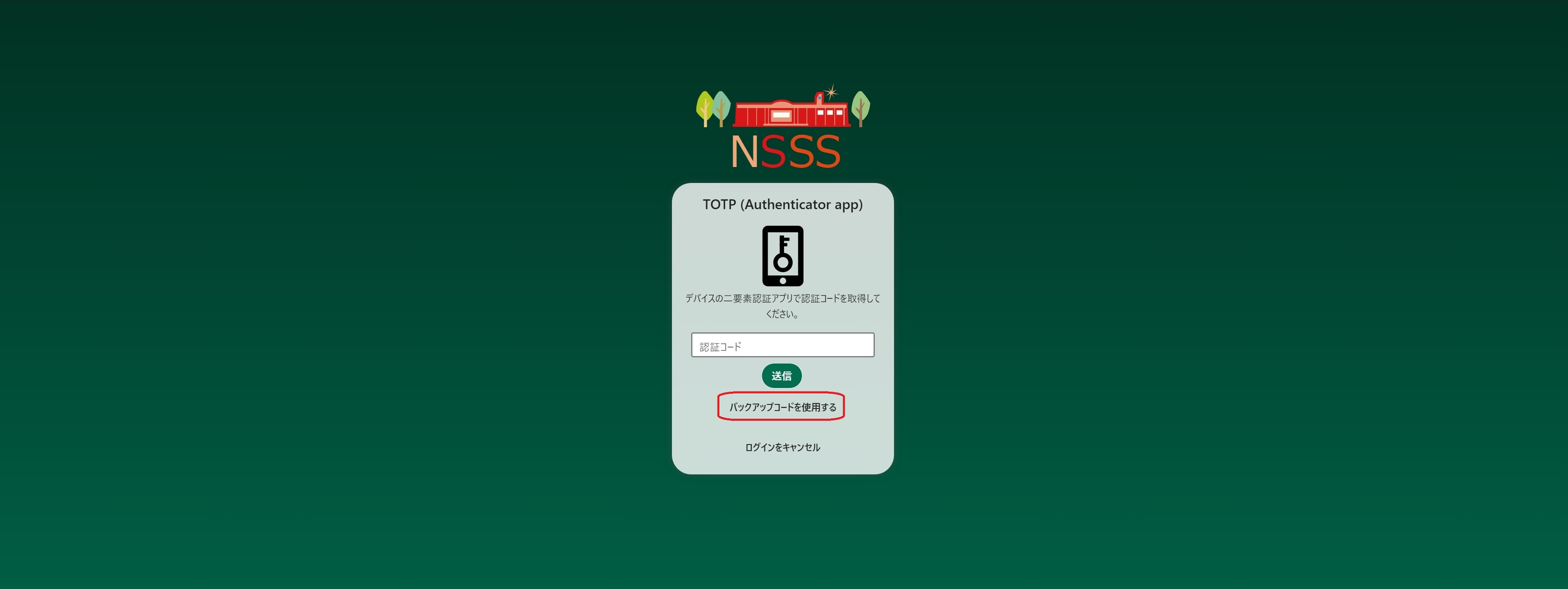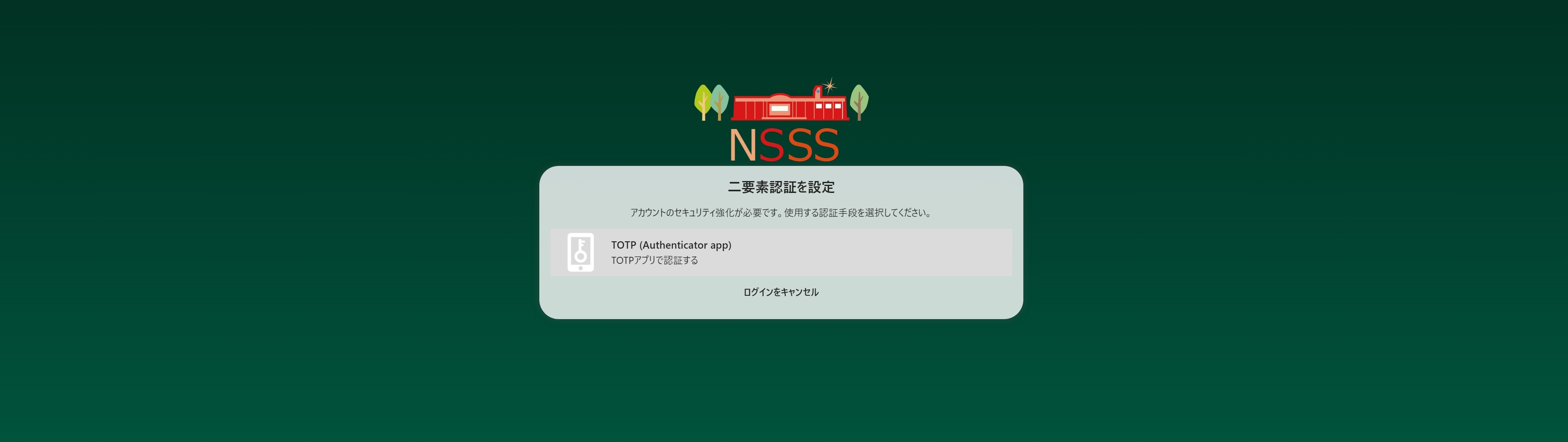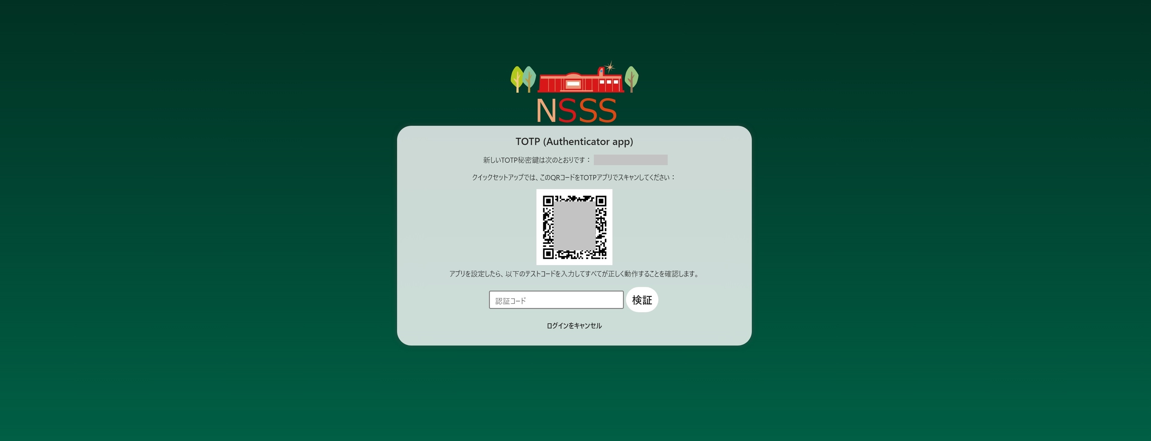 NSSS はスマートフォンなどの認証アプリを用いた二段階認証を採用しています。 その他の操作についてはNUSSに準じておりますのでコチラ をご覧ください。
