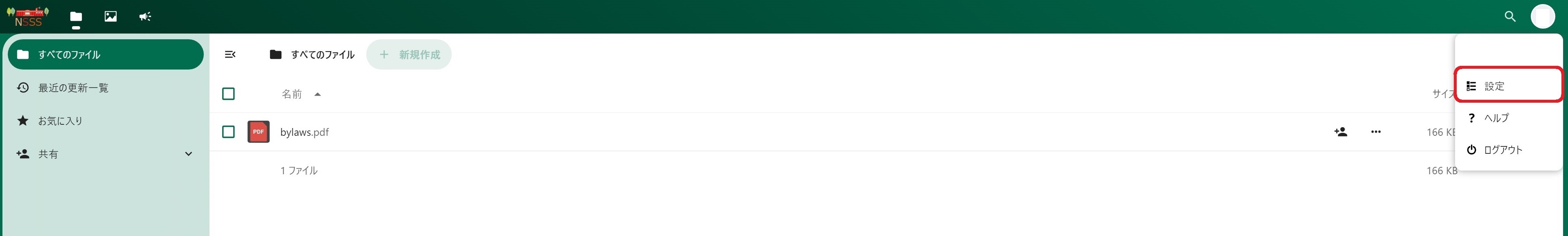 ログイン方法のバックアップを行うため、画面右上のアイコンをクリックして「設定」を選択します。