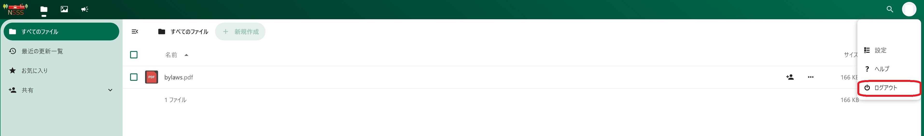 ログアウトする場合は画面左の丸いアイコンをクリックしてログアウトします。
