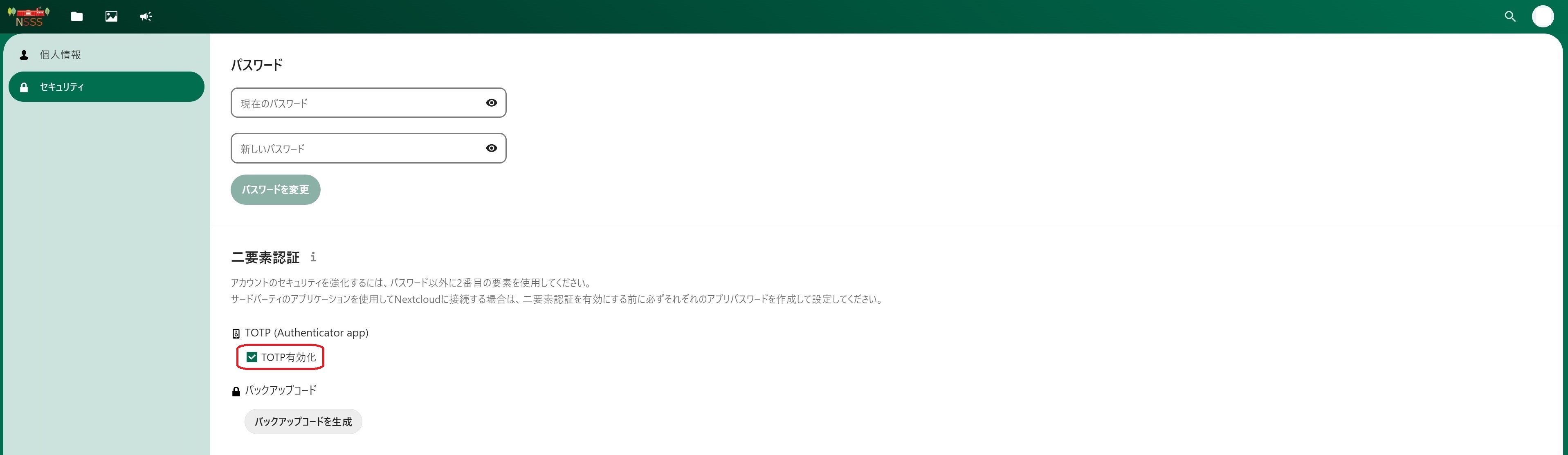 NSSSにログインし設定からセキュリティの画面を表示します。