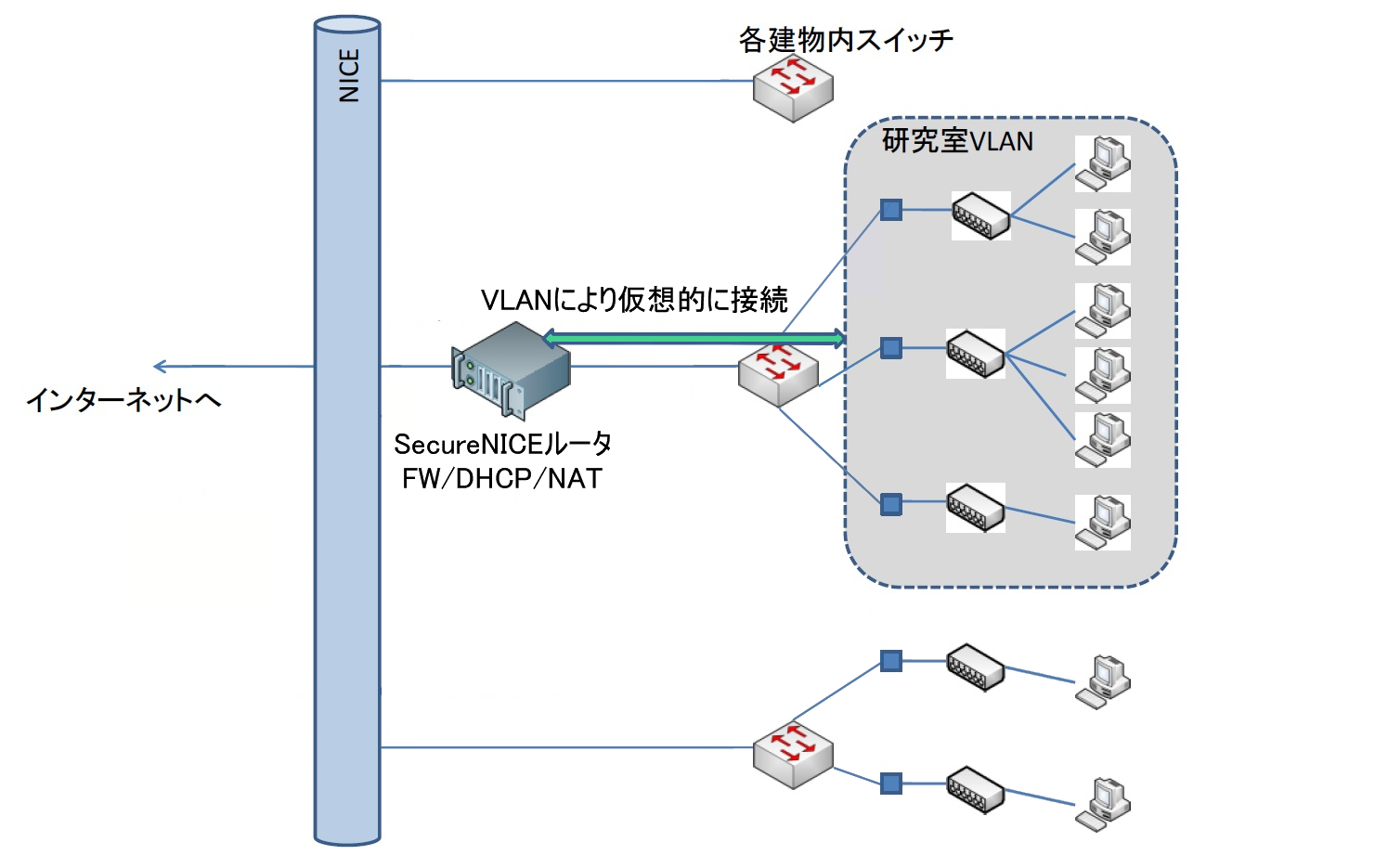 Secure NICEは,安全かつ利便性の高い研究室(等)専用ネットワークです。